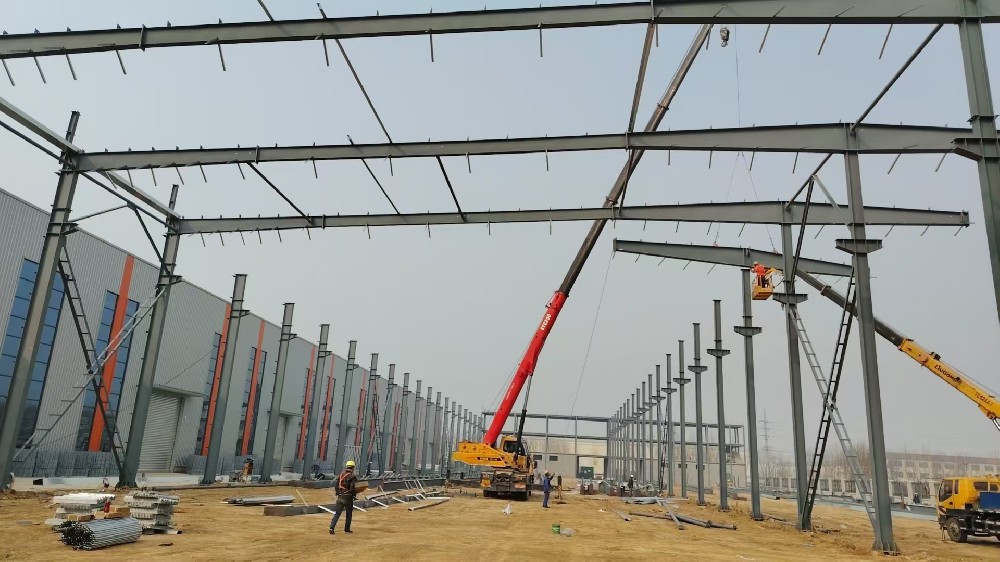 深州市金鼎建材有限公司鋼構生產基地,坐落于深州市護駕遲鎮,占地50余畝,并擁有現代化標準加工基地1.5萬平方米,現代化辦公樓3000平方米,具備年產1萬噸鋼構件的生產規模,是集鋼構設計、制作、銷售、施工安裝為一體的大型綜合性鋼構企業。
